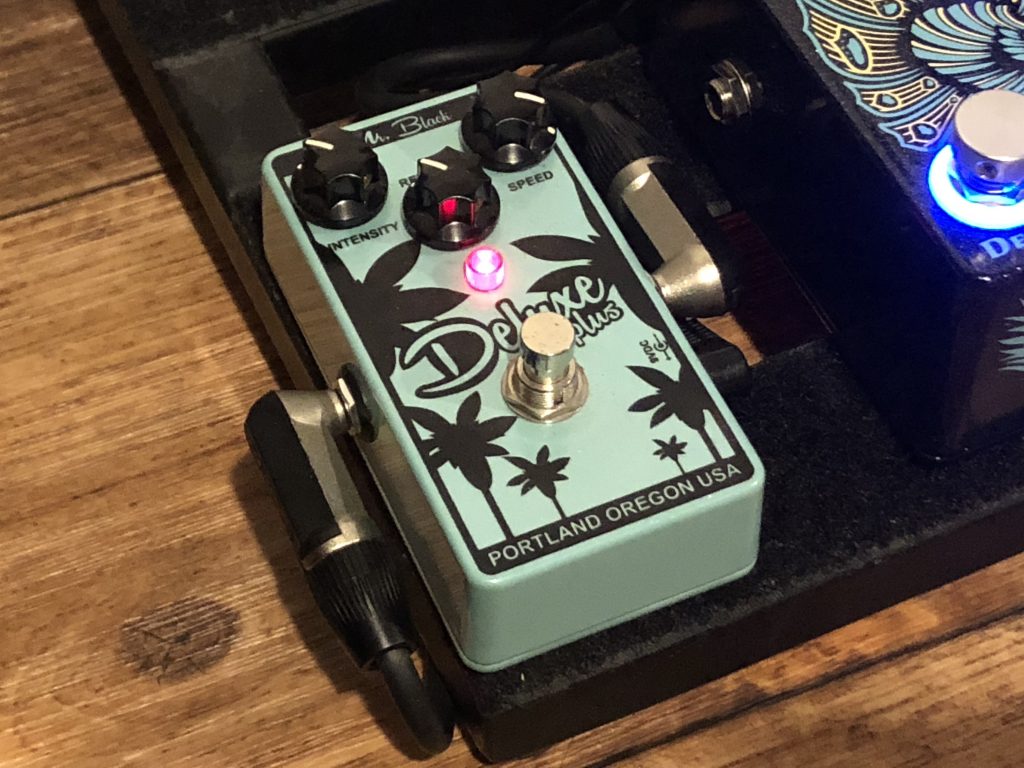À l’utilisation, on se dit vite que c’est que ça aurait été mieux d’avoir 1 foot switch par effet. Mr.Black l’a bien compris et propose désormais cette option dans une autre pédale : la « Deluxe Deluxe Plus »(ci-contre). Ceci dit, ça reste pratique d’avoir une petite pédale sur son board qui permet d’avoir 2 effets.