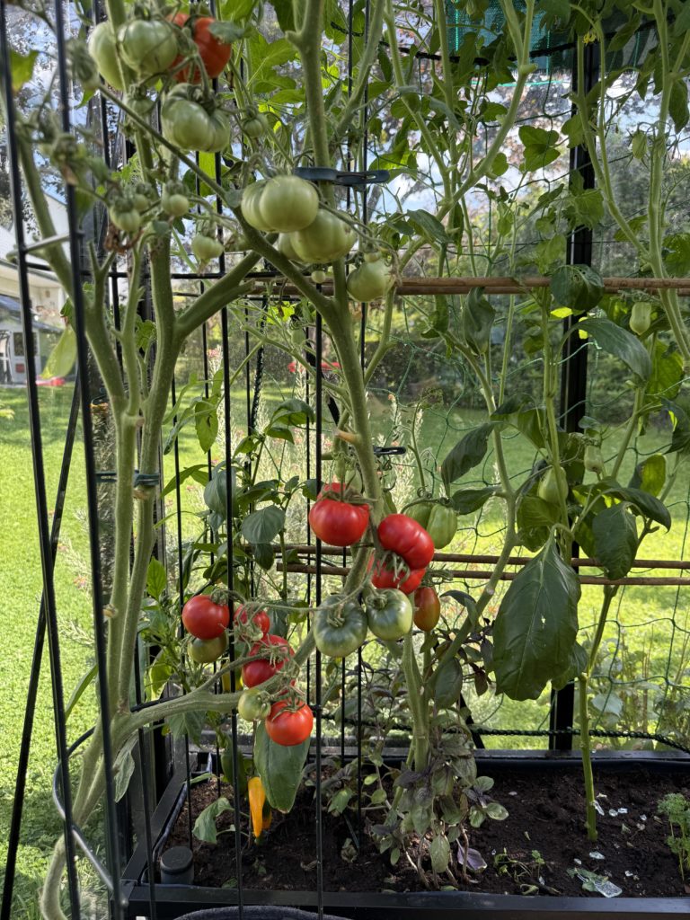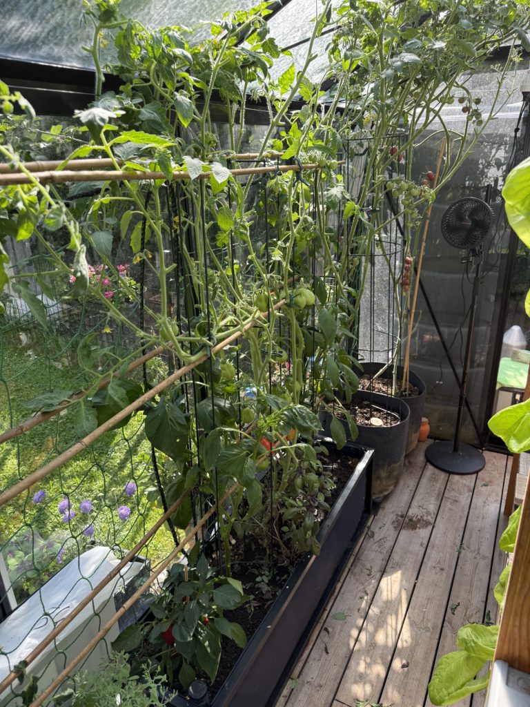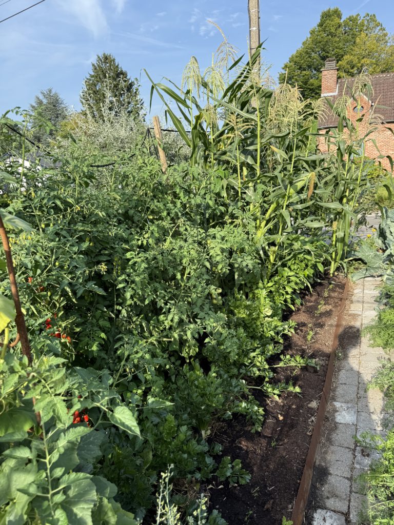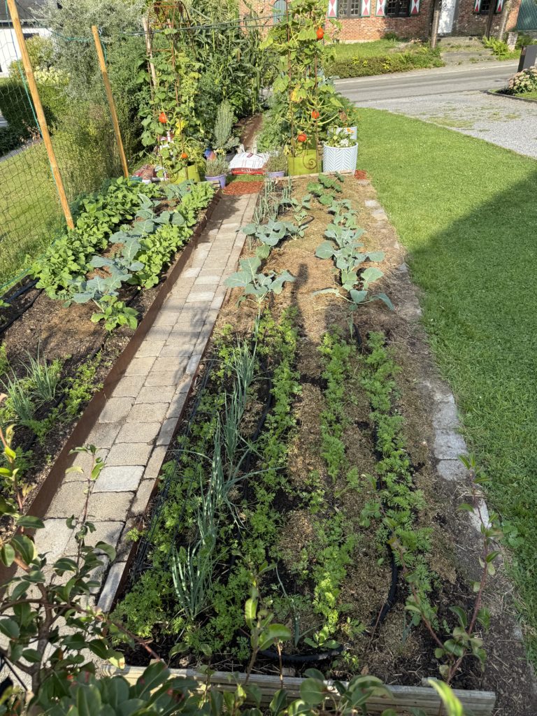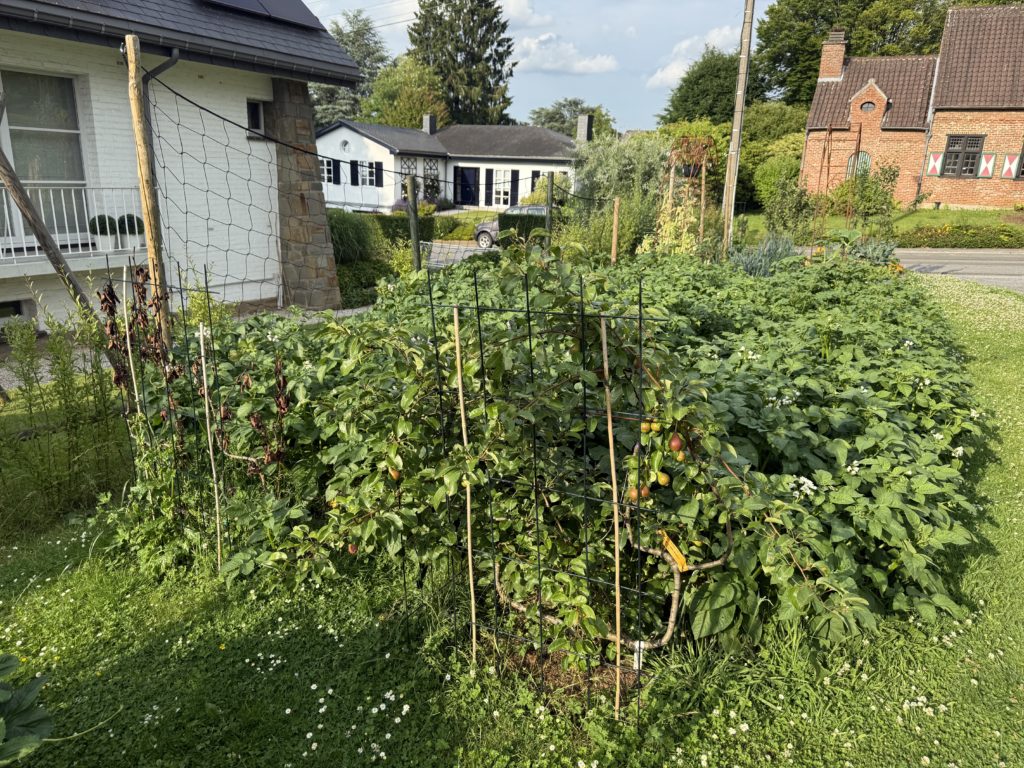 Cela aurait pu être mieux au niveau des tomates, mais la première vague de chaleur a fait couler un bon nombre de fleurs qui n’ont finalement rien donné. Les plus touchées ont été les tomates cerises (délice du jardinier et black cherry) et la Merveille des serres (variété belge).