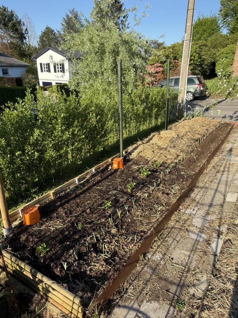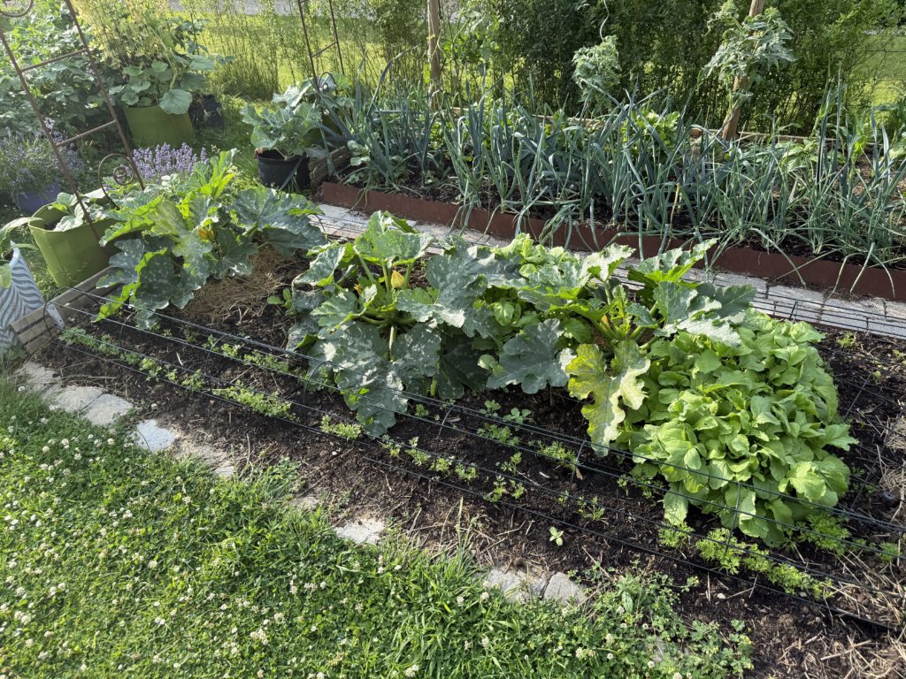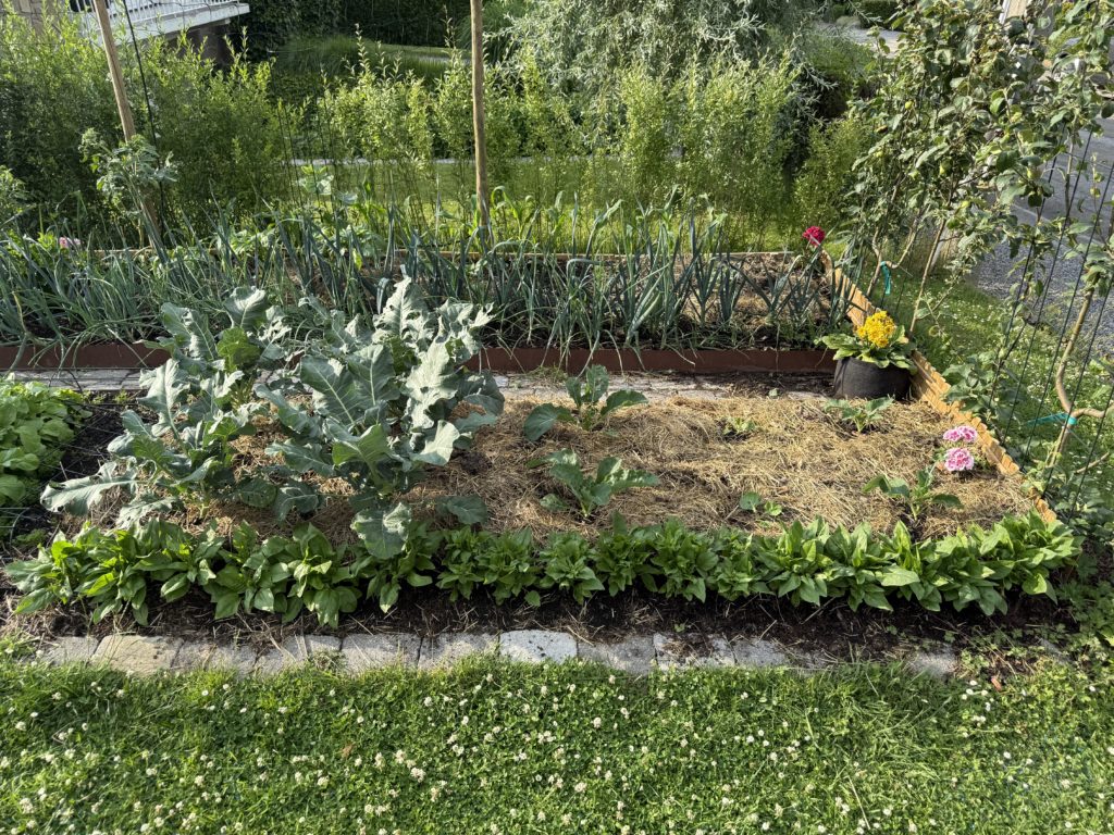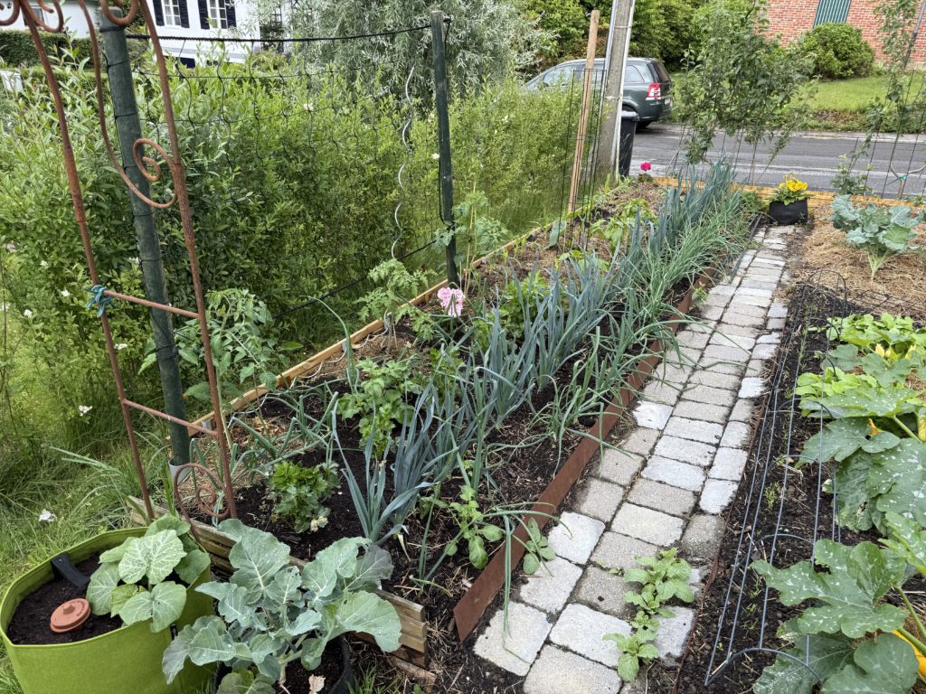 La place libérée par nos erreurs a été replantée à la mi-juillet avec des poireaux pour le potager d’hiver.